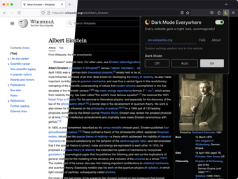 Темный режим везде - это расширение для Firefox, предназначенное для улучшения опыта просмотра, применяя темную тему ко всем веб-сайтам. Этот удобный инструмент автоматически преобразует любую веб-страницу в темный режим, значительно уменьшая напряжение глаз во время поздних сеансов просмотра. Пользователи могут легко включать или выключать темный режим для отдельных сайтов или активировать его на всех сайтах одновременно. Горячие клавиши дополнительно упрощают этот процесс, позволяя быстро вносить изменения, не прерывая поток просмотра.